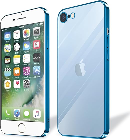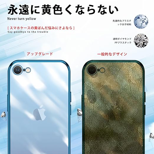 iPhone SE用 ケース 第2世代 iPhoneSE2用ケース 第3世代 SE3 iPhone8/7用ケース クリア 耐衝撃 軽量 アイフォン SE2/se3 スマホケース カバー りメッキ加工 TPU 米軍規格 保護カバー 落下防止 ストラップホール付き 防塵 ワイヤレス充電 一体型 (ブルー) a