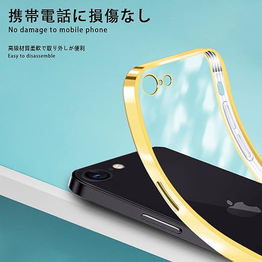 iPhone SE用 ケース 第2世代 iPhoneSE2用ケース 第3世代 SE3 iPhone8/7用ケース クリア 耐衝撃 軽量 アイフォン SE2/se3 スマホケース カバー りメッキ加工 TPU 米軍規格 保護カバー 落下防止 ストラップホール付き 防塵 ワイヤレス充電 一体型 (ゴールド) a
