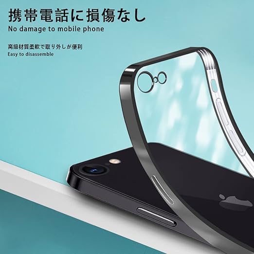 iPhone SE用 ケース 第2世代 iPhoneSE2用ケース 第3世代 SE3 iPhone8/7用ケース クリア 耐衝撃 軽量 アイフォン SE2/se3 スマホケース カバー りメッキ加工 TPU 米軍規格 保護カバー 落下防止 ストラップホール付き 防塵 ワイヤレス充電 一体型 (ブラック) a
