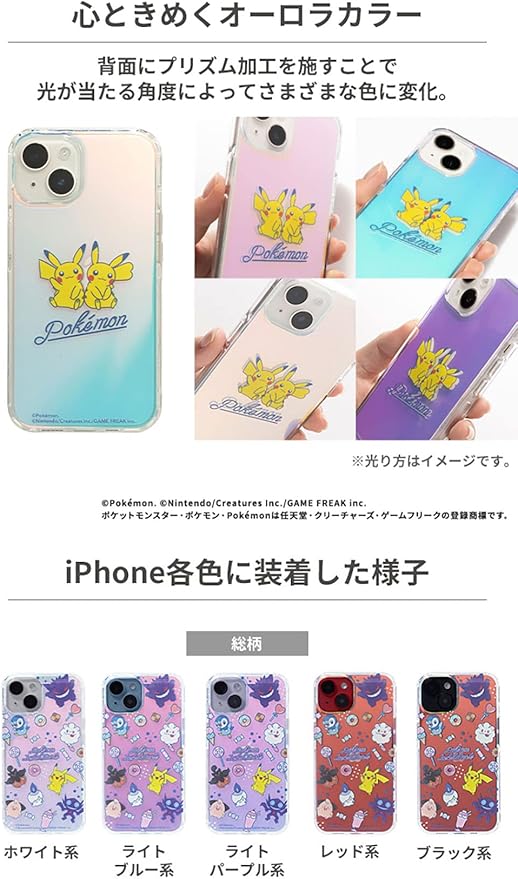 機能性にこだわり抜いたブランド「HIGHER(ハイアー)」にオーロラの輝きをプラス。ポケモンのデザインのきらきらクリアケースが登場しました。HIGHERのケースは「耐衝撃性・耐候性・抗菌性」すべてを備えた高機能ケース。シンプルなデザインの中に、妥協のないこだわりが詰め込まれています。オーロラカラーの層の上にピカチュウ、ポッチャマ、ゴーストタイプなどのポケモンたちのデザインを重ねることで立体感のある仕上がりに。