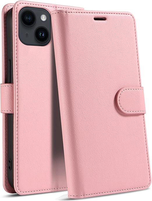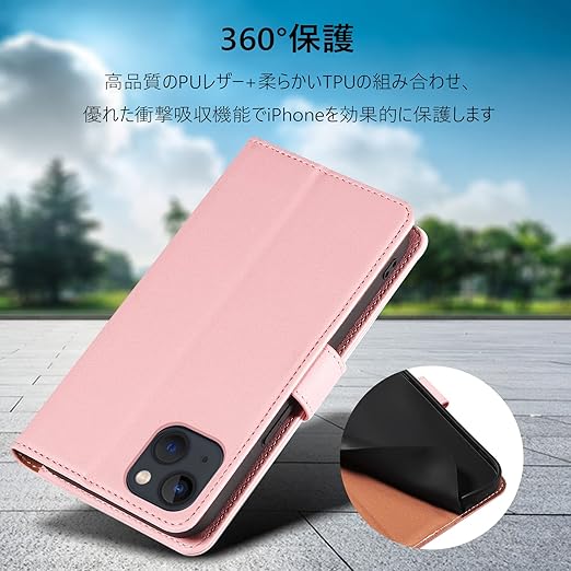 QUEASON 互換品 スマホケース「iPhone 14 用 ケース 手帳型」マグネット式 PUレザー いphone14 用 ケース 手帳型 耐衝撃 アイフォン14 用 ケース 手帳型 カード収納 スタンド機能 アイホン14 用 ケース手帳型 携帯カバー 落下防止 全面保護(ピンク) a