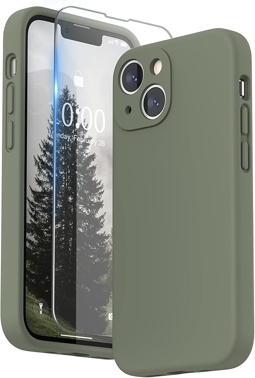 SURPHY iPhone13 mini ケース シリコン,フィルム付き 5.4インチ対応(2021)アイフォン13 ミニ シリコンケース(レンズの全面保護) 耐衝撃 超軽量 指紋防止 全面保護 iPhone13 miniソフトカバー (オリーブ) a