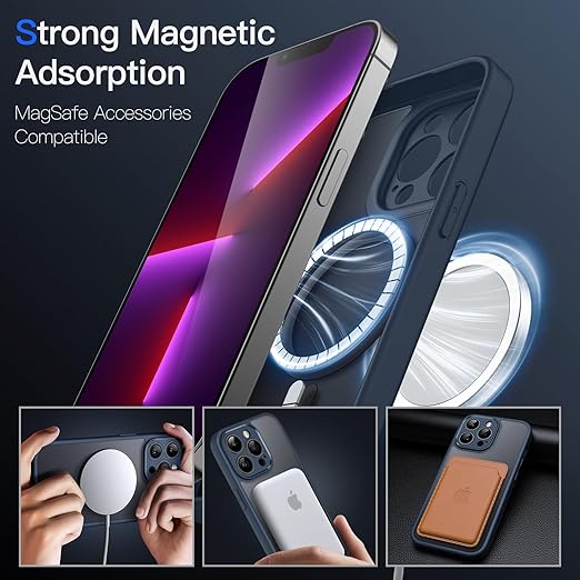 JETech iPhone 13 Pro 6.1インチ用 マグネット ケース MagSafeに対応 半透明のマット背面 カメラレンズ 完全保護 薄型 耐衝撃 カバー (紺) a