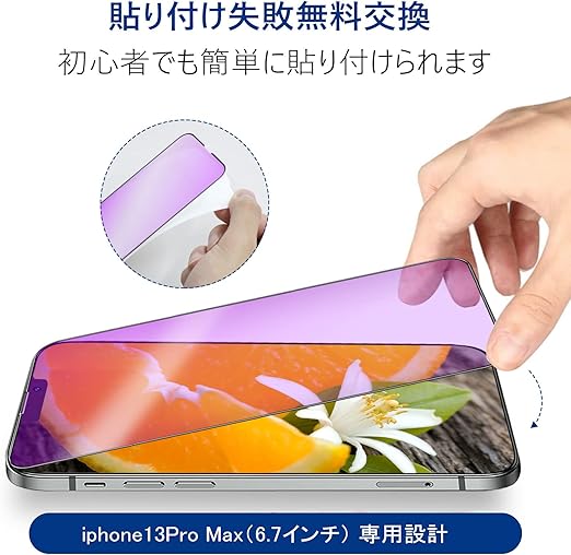【ブルーライトカット】 iPhone 13 pro max ガラスフィルム 全面保護 いphone13pro max 強化ガラス フィルム アイフォン13pro max 用 液晶 保護シート 【2枚セット/目の疲れを軽減】 a