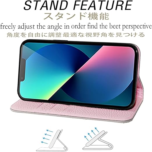 iPhone 13 ケース 手帳型 カバー 本革 耐衝撃 保護 ケース 内蔵マグネッ RFIDト 財布型 携帯カバー カードポケット スタンド機能 NanHou - グレー/ピンク a