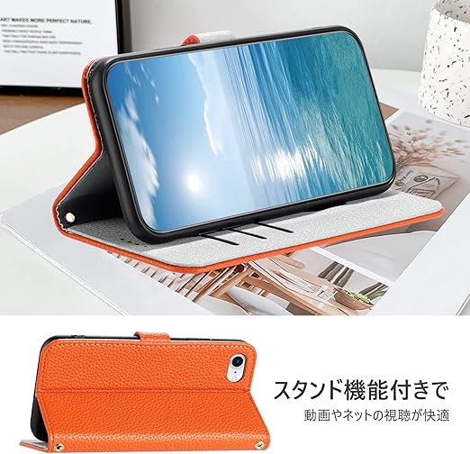 Deeaar iPhone se ケース 手帳型 人気 スマホケース iPhone7 iPhone8 財布型 カバー カードポケット付き 軽量 薄型 全面保護 贈り物 iPhone 第2世代 第3世代 カード収納 スタンド機能 横置きスタンド機能 高級PUレザー 上質な手触り 擦り傷防止 ケース (iPhone 7/8/se2/se3 4.7 inch対応) - オレンジ a