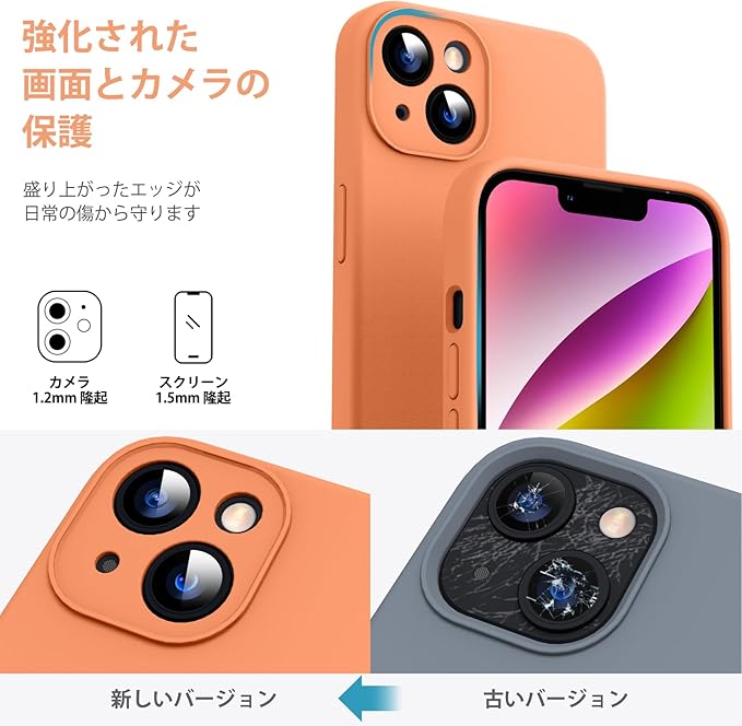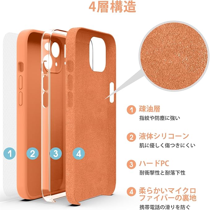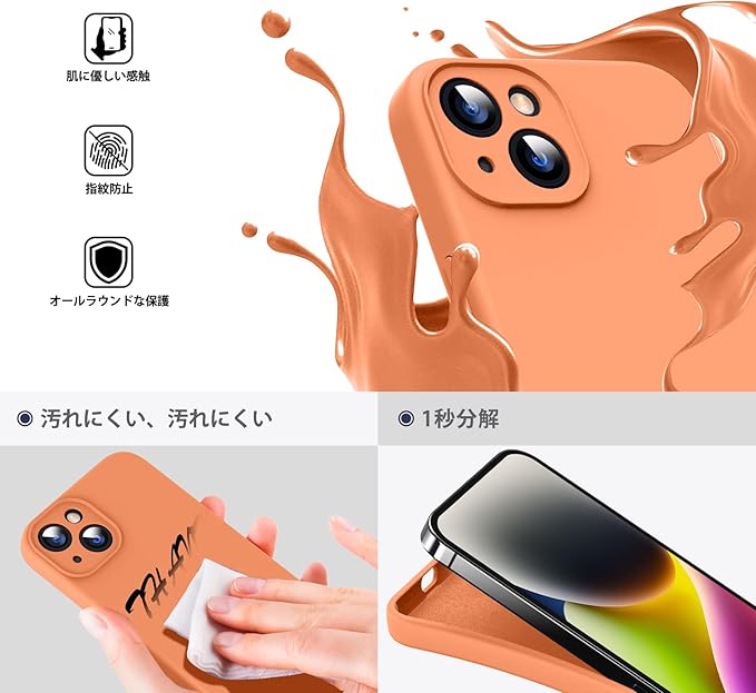 Supdeal iPhone 14 ケース 対応液体シリコン [耐衝撃] [柔軟TPU液体シリコン] [ソフトタッチ] [レンズの全面保護] [指紋防止] [落下防止] [滑り防止] 軽量 4層保護 アイフォン 14 スマホカバー 6.1インチ(オレンジ) a