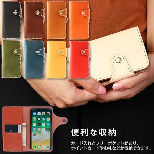 [Native Creation] iPhone14 ケース 9色 スマホケース 手帳型 本革 栃木レザー 日本製 (iPhone14, BLACK) a