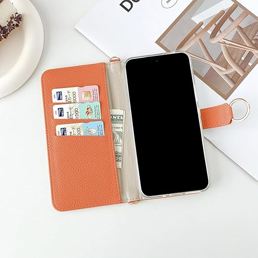 MAGICASE For iPhone SE ケース 手帳型 第3世代 第2世代 おしゃれ リング付き iPhone 8 ケース 手帳型 かわいい 女性 iPhone 7 ケース シンプル 美しい 財布型 iPhone 6/6S エレガント 人気 ストラップホール付き マグネット式 カード収納 スタンド機能 高級PU 肌感レザー 耐衝撃 レディース 手作 落ち着いた色 レトロ(オレンジ) a