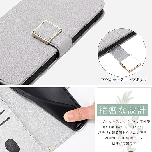 【耐衝撃性】耐熱性と柔軟性を誇るPUレザーから作られていて、滑りにくく、指紋、油分などもつきにくく、手帳型ならではの
