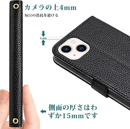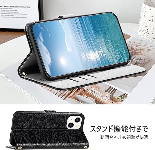 Deeaar iPhone 13 ケース手帳型 人気 スマホケース あいふぉん13 財布型 カバー カードポケット付き 軽量 薄型 全面保護 贈り物 アイフォン 13 カード収納 スタンド機能 横置きスタンド機能 高級PUレザー 上質な手触り 擦り傷防止 ケース (iPhone 13 6.1 inch対応) - ブラック a