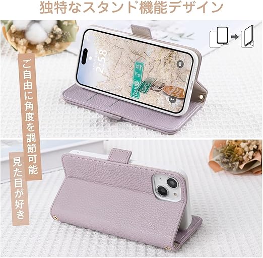 iPhone15 手帳型ケースショルダー スマホケース iPhone15 可愛い 肩掛け 斜め掛けショルダー アイフォン 15 ケース手帳型 おしゃれ カード収納 かわいい 首掛けショルダー あいふぉん 15 スマホケース シンプル 女性 ストラップ ジッパー小銭入れ お財布付 小銭入れ 大容量 サイドマグネット 薄型軽量 耐久性 全面保護 着脱しやすい(スモークパープル) a