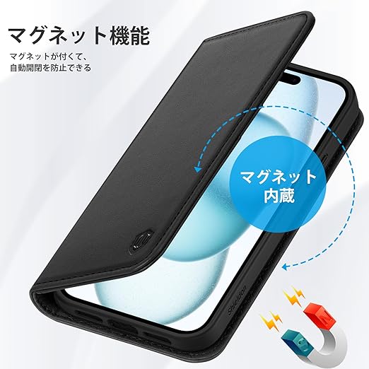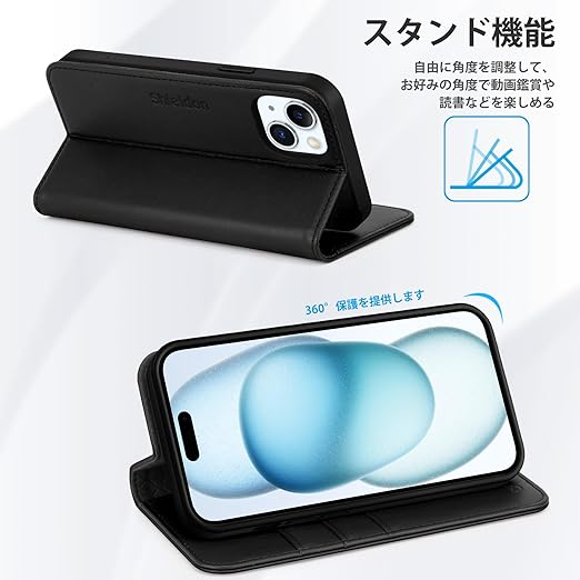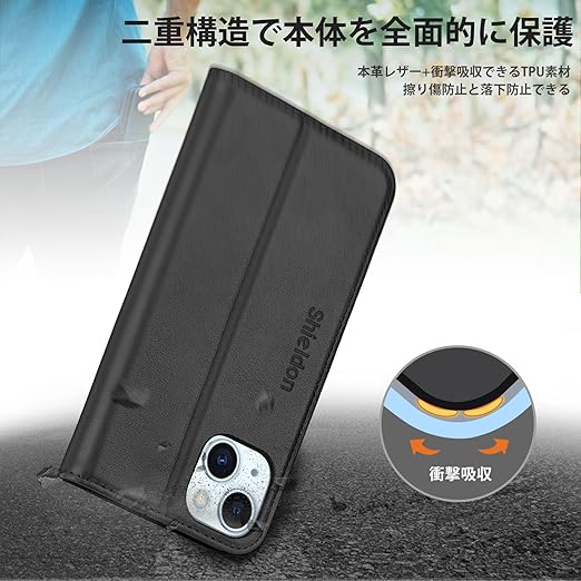 SHIELDON iPhone 15 Plus 対応ケース 手帳型 本革 あいふぉん 15プラス スマホカバー 衝撃吸収 TPU素材 横置きスタンド機能 カード収納 マグネット内蔵 [RFIDブロッキング]全面保護 アイホン15 プラス 対応 スマホケース 2023年発売 6.7インチ対応 5G ブラック a