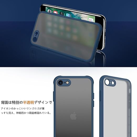 iPhone SE 第3世代 第2世代 ケース 耐衝撃 半透明 iPhone8 ケース 軽量 薄型 PC iPhone7カバー 滑り止め マット感 黄ばみなし 米軍MIL規格 ストラップホール付き ワイヤレス充電 EUMADOVE (ブルー, iPhone SE2022、iPhone SE2020、iPhone 8、iPhone 7) a