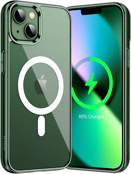 JETech iPhone 13 マグネット ケース(6.1インチ用) MagSafe ワイヤレス充電対応 衝撃吸収 バンパーカバー 傷つけ防止 透明バック (アルパイングリーン) a