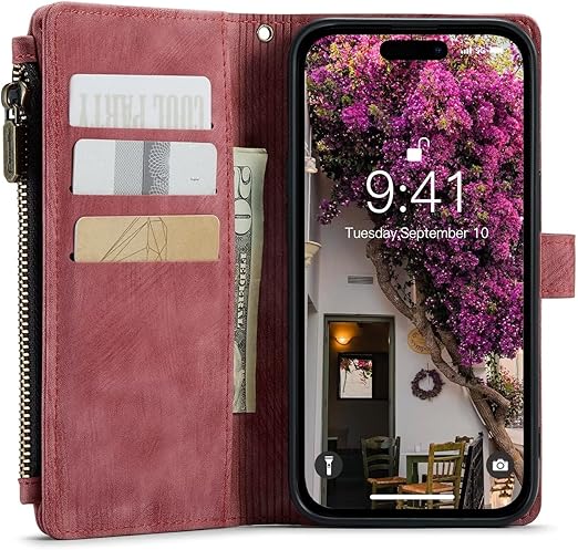 Sursuni iPhone 15 ケ用 ケース 手帳型 カード収納 小銭入れ アイフォン 15 カバー 財布型 ストラップ 付き カードポケット付き 収納ポケット マグネット吸着 横置き スタンド機能 スト耐衝撃 ラップホール付き c