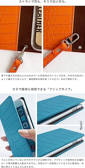 【素材】本体(外側)・カードポケット・ストラップ : 牛革(本革にクロコダイル模様をエンボス加工) 本体(内側) : シャムード(人工スエード) 内側ケース : PC(ポリカーボネート)またはシリコン ステッチにはドイツの手芸糸老舗メーカー「ギッターマン(GUtermann)」の縫い糸を使用。※仕入れる生産ロットや裁断箇所により、色合いや模様の出方が若干変わる場合がございます。「イメージと違う」など初期不良以外での返品・交換はご遠慮いただいております。予めご了承くだ