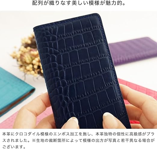 【素材】本体(外側)・カードポケット・ストラップ : 牛革(本革にクロコダイル模様をエンボス加工) 本体(内側) : シャムード(人工スエード) 内側ケース : PC(ポリカーボネート)またはシリコン ステッチにはドイツの手芸糸老舗メーカー「ギッターマン(GUtermann)」の縫い糸を使用。※仕入れる生産ロットや裁断箇所により、色合いや模様の出方が若干変わる場合がございます。「イメージと違う」など初期不良以外での返品・交換はご遠慮いただいております。予めご了承くだ