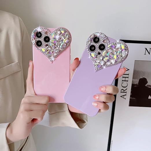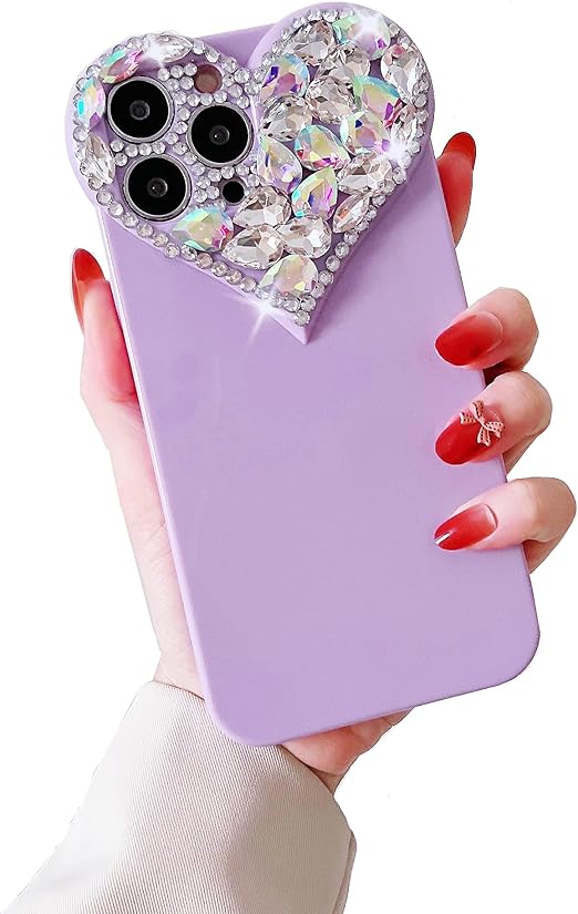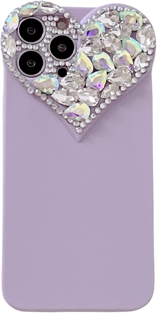CrazyLemon 適用 iPhone 15 Pro Max ケース シリコーン かわいい おしゃれ ハート型 キラキラ グリッター ラインストーン デザイン カメラ レンズ 保護 カバー アイフォン15プロマックス ケース ソフト TPU 薄型 軽量 レディース 女性 人気 (for iPhone 15 Pro Max Case Cute Glitter) - パープル a