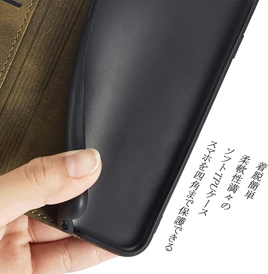 ?【素材改良】本商品の外部カバーは牛革繊維を人工合成という生産プロセスで仕上げられた合革で、普通の合革より、性能上の 耐熱性、耐摩擦が一層アップされた。表面生地が硬すぎず、やわすぎず、ちょっと良い手触りです。手汗が出てきても滑りにくく、ケースにも変な匂いがございません。インなケースは弾力性のあるソフト素材を採用しており、四角までしっかり保護でき、実用性高い手帳型です。