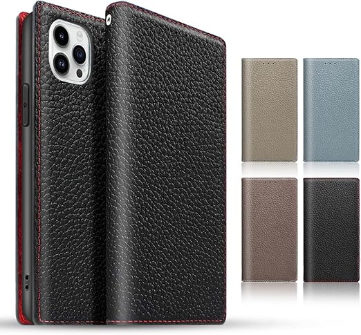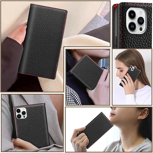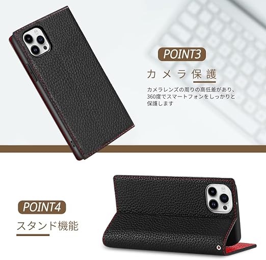 TENSIK iPhone 15 Pro ケース 手帳型 アイフォン 15 プロ ケース 高級牛本革 アイホン15pro スマホケース マグネット式 携帯カバー 財布型レザー 手帳型カバー本革 スタンド機能 ストラップ付き カードポケッ トギフトボックス付き ブラック×レッド a