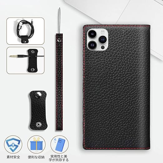 【対応機種】:iPhone 15 Pro;ケース表面の色に合わせたイヤホン収納ベルトが付属しています。イヤホンを収納に便利です。愛機を全面保護のためにマグネットを内蔵してしっかりと閉めることができます。インナーTPUケースはクリアとブラックの2種類があります。ランダムに発送いたします。在庫状況によりお選びいただけませんが、機種専用ケースでお使いの機種にピッタリです。