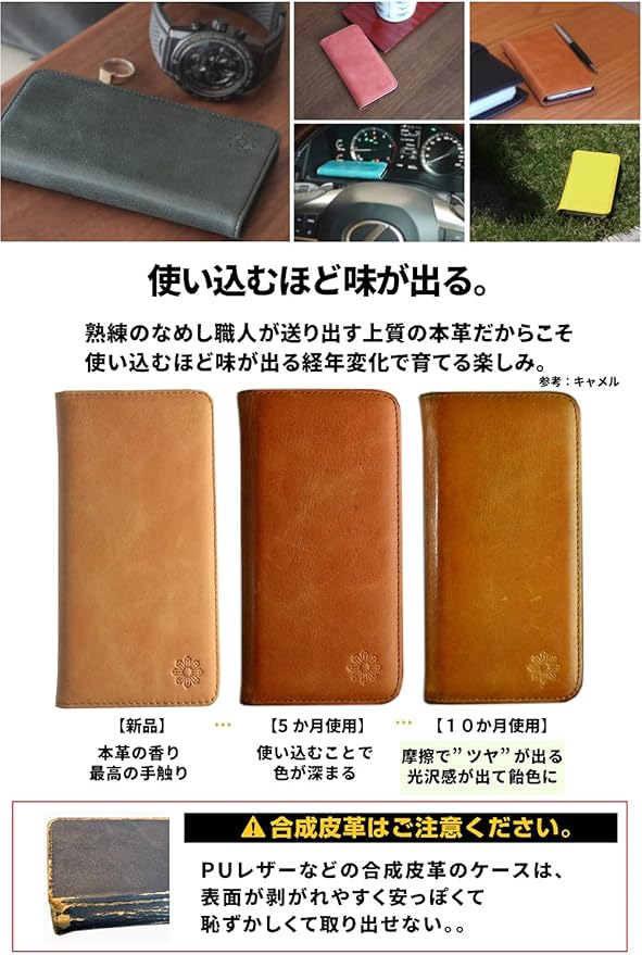 【iPhone 15 用 手帳型ケースです】 本格的な高品質の牛革を使用して、職人が1つ1つ丁寧に作り上げたハンドメイドです。飽きのこないシンプルなデザインで感触、質感、縫製も高級感漂う仕様でおしゃれでかっこいい。カジュアルなシーンやワンランク上のシーンで取り出しても恥ずかしくない特別感で、わずらわしいマグネットの留め具がなく、飽きのこないシンプルなデザインです。ギフト・プレゼントにもおすすめ!メンズ、レディース、年齢問わず圧倒的に人気の”おしゃれ大人のスマホケース”です。本物だからリピート率が