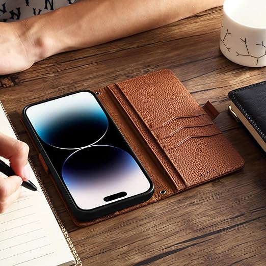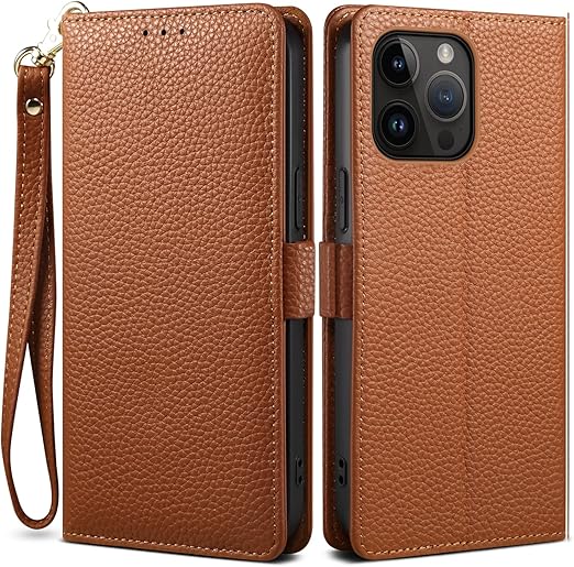 【 2023 新登場! 高級シュリンクカーフレザー】iPhone 15 Pro Max ケース 手帳型 本革 牛革 カード収納 サイドマグネット式 横置きスタンド機能付き 上下にストラップホール付き ストラップ付 アイフォン 15 Pro Max ケース 柔軟なTPU素材 耐衝撃 全面保護[Noble Series](iPhone 15 Pro Max、キャメル) a