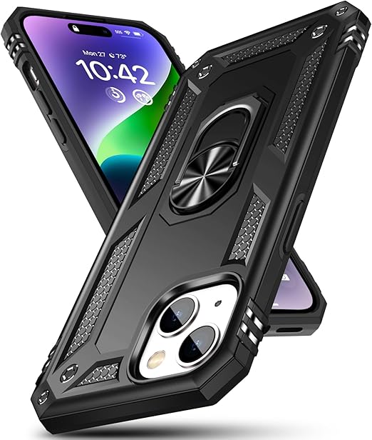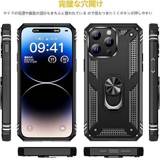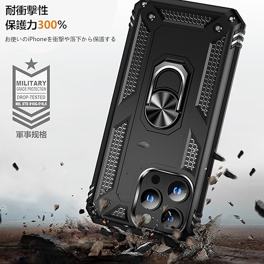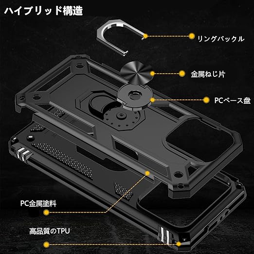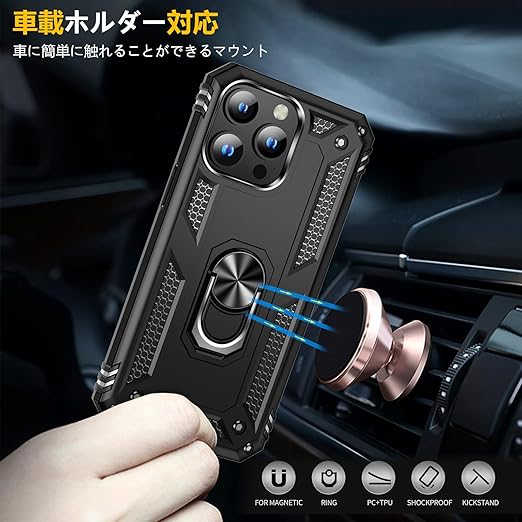iPhone 15 用 ケース リング付き 耐衝撃 TPU 車載対応ホルダー対応 スマホケース PC スタンド機能 薄型 軽量 アイフォン15 用 カバー カメラ保護 衝撃吸収 指紋防止 黄変防止 一体型 四隅滑り止め 手触り良い 全面保護カバー 黒 SJ16.69 a