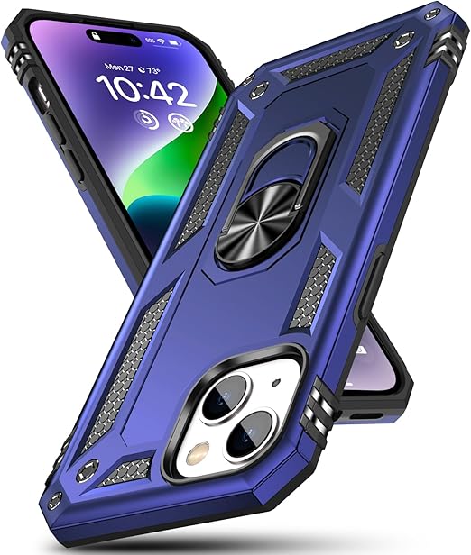 iPhone 15 Plus 用 ケース リング付き 耐衝撃 TPU 車載対応ホルダー対応 スマホケース PC スタンド機能 薄型 軽量 アイフォン15 plus 用 カバー カメラ保護 衝撃吸収 指紋防止 黄変防止 一体型 四隅滑り止め 手触り良い 全面保護カバー 青 SJ16.78 a