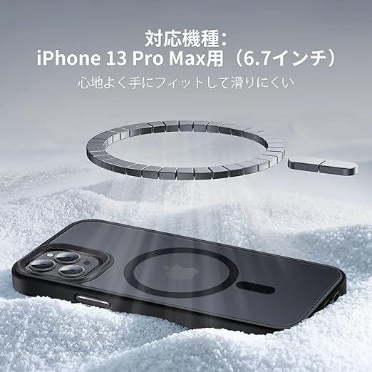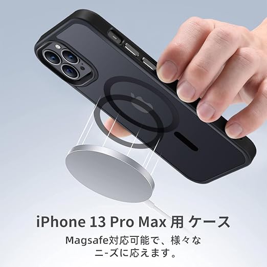 【比類のない保護と便利】は、iPhone 13 Pro Max ケースは、比類のない保護と利便性を提供します。対応 MagSafe(マグセーフ)と振動防止、アルミキー付きの半透明マットバック。