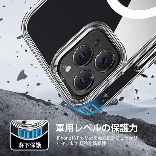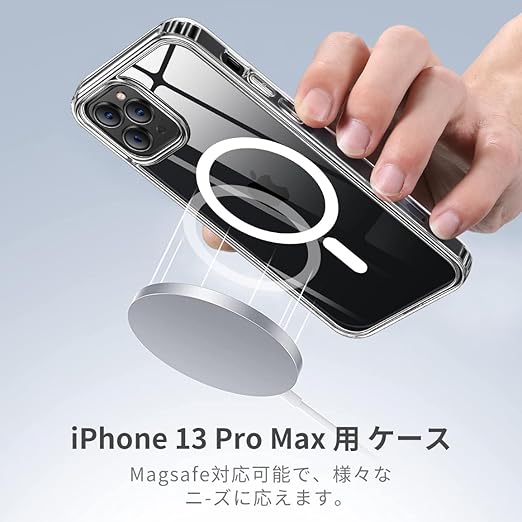 【米軍規格・MagSafe対応】Gtsoho iPhone 13 Pro Max 用 ケース 透明 米軍規格 耐衝撃 マグネット搭載 マット感 黄ばみなし ストラップホール付き マグセーフ対応 ワイアレス充電対応 透明な a