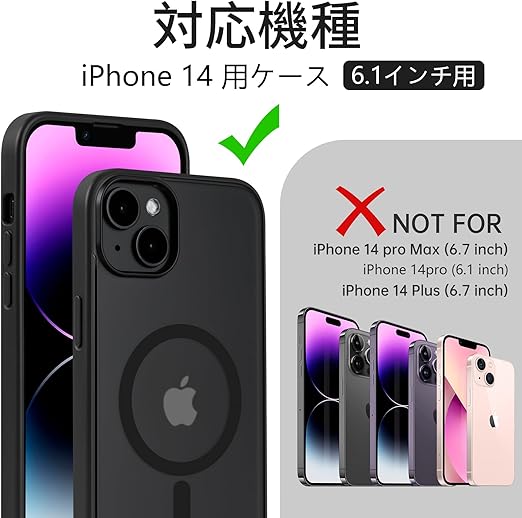 Magsafe充電対応:このiPhone 14 用ケースマはマグネットを内蔵しているので、外観を損なわずに便利なマグネット技術を楽しむことができま