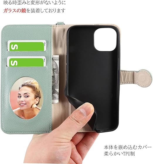 iPhone SE 第2世代 / 第3世代 スマホケース 手帳型 お花柄 無地 鏡付き タッセルセット 女性かわいい Befortwo iPhone8 iPhone SE 携帯ケース 第2世代 / 第3世代 ポケット付き ストラップホール付き キーホルダー付け アイフォン se2 / se3 スマホカバー 手帳型 スタンド機能 マグネット式 使いやすい ソフトケース付き グリーン a