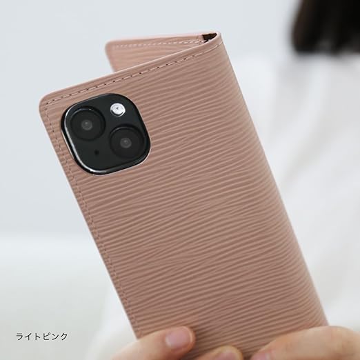 iPhone 15 Pro Max プロマックス ケース 本革 エンボスレザー スマホケース 手帳型 スマホ カバー 波模様 型押しレザー カード入れ マグネット不使用 (iPhone15ProMax, ライトピンク) a