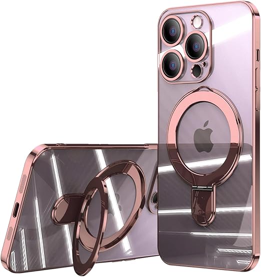 MuZiF iPhone 13 Pro 用 ケース MagSafe対応 リング付き クリア メッキ加工 カバー 車載ホルダー対応 多機能 レンズ保護 薄型軽量 耐衝撃構造 透明柔らかいTPU アイフォン13 Pro 用 磁気カバー クリアケース(iPhone 13Pro,ローズゴールド) a