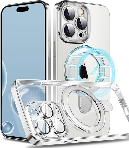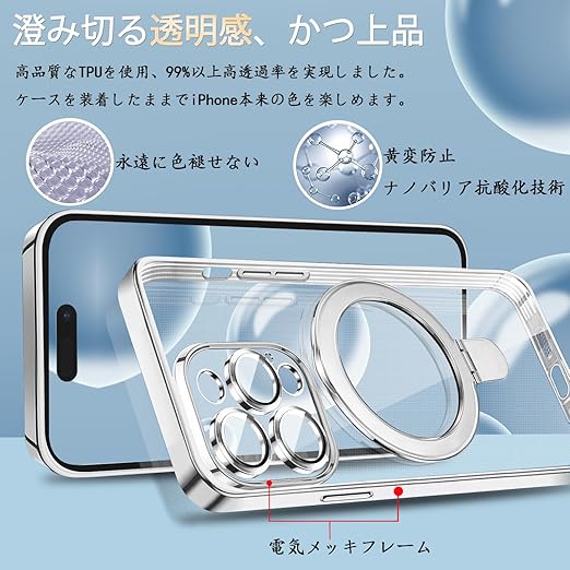 MuZiF iPhone 13 Pro 用 ケース MagSafe対応 リング付き クリア メッキ加工 カバー 車載ホルダー対応 多機能 レンズ保護 薄型軽量 耐衝撃構造 透明柔らかいTPU アイフォン13 Pro 用 磁気カバー クリアケース(iPhone 13Pro,クリア) a