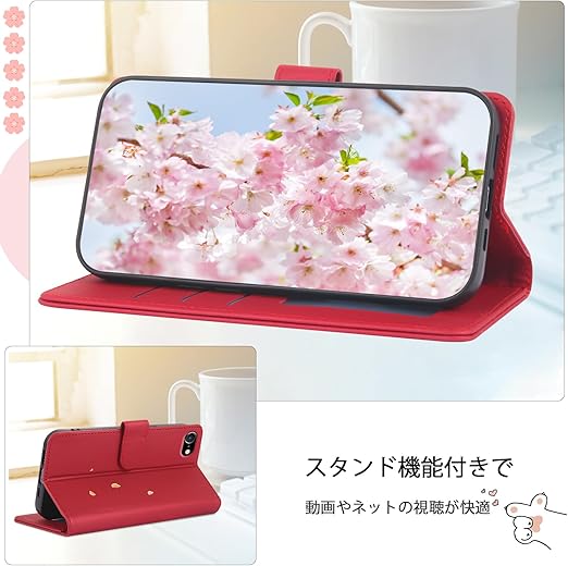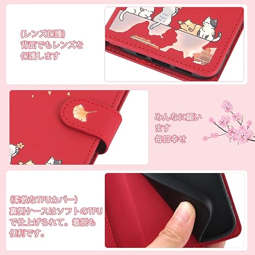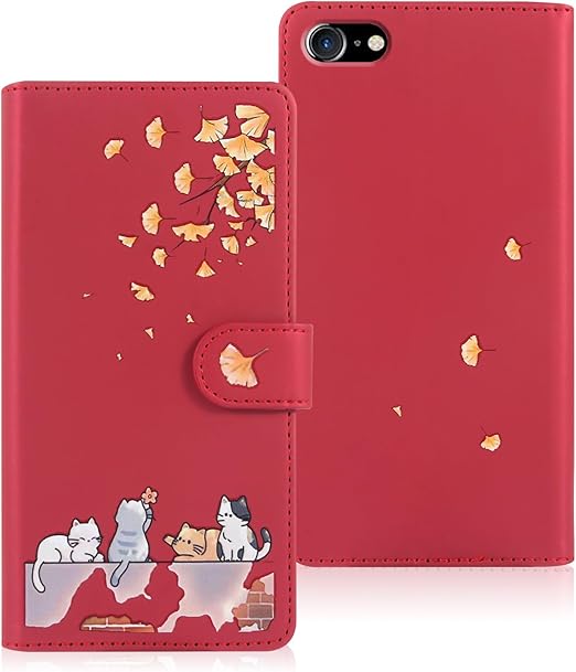 Reddylin 対応 iPhone SE ケース 手帳型 iPhone SE2 ケース 手帳型 iPhone SE3 ケース 手帳型 かわいい猫 落ち葉 iPhone7ケース カード収納 軽量 iPhone8 ケース 手帳型 iPhone7 ケース 手帳型 アイフォンSE ケース iPhone SE スマホケース iPhoneケース SE スタンド機能 全方位保護 財布型 耐衝撃 -レッド a