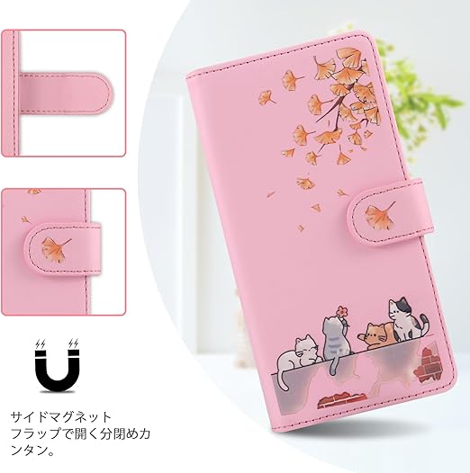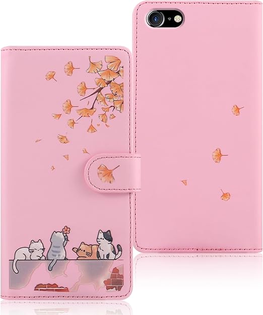 Reddylin 対応 iPhone SE ケース 手帳型 iPhone SE2 ケース 手帳型 iPhone SE3 ケース 手帳型 かわいい猫 落ち葉 iPhone7ケース カード収納 軽量 iPhone8 ケース 手帳型 iPhone7 ケース 手帳型 アイフォンSE ケース iPhone SE スマホケース iPhoneケース SE スタンド機能 全方位保護 財布型 耐衝撃 -ピンク a