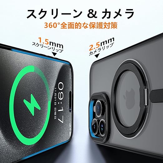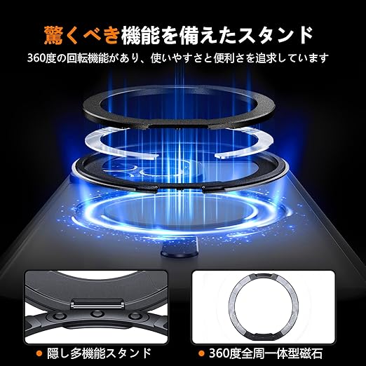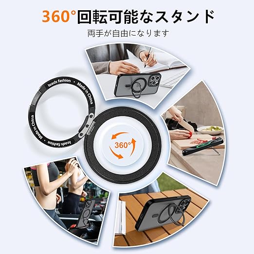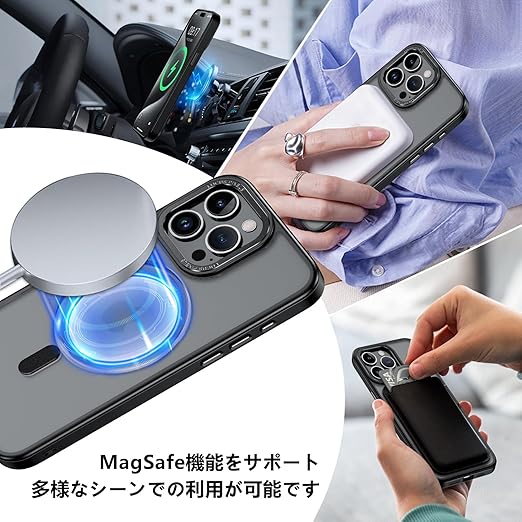 【対応機種】iPhone 15 Pro 用 ケース(三眼カメラ、6.1インチ)専用のMagSafe対応スマートフォンケースです。(注:本製品を装着したまま、ワイヤレス充電が可能です。)**ご注意ください:スタンドを過度に引っ張ったり強い力を加えたりしないでください。変形や脱落の原因となる恐れがあります。