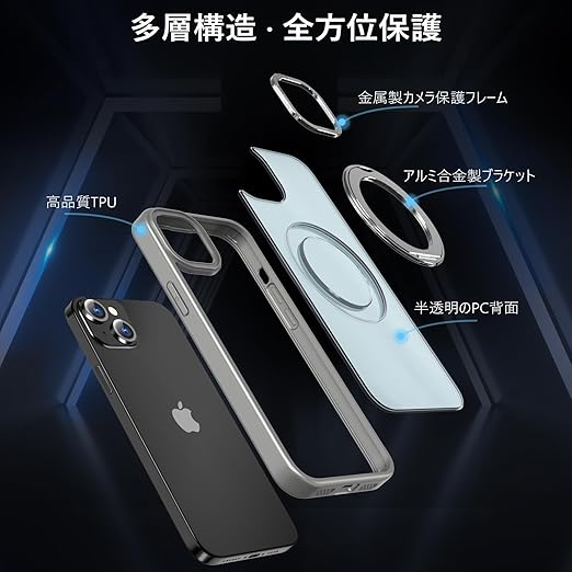 【Magsafe対応・多機能】iphone14用/iphone13用ケース(両眼カメラ、6.1インチ)。ワイヤレス充電やモバイルバッテリーなど全てのMagSafe用アクセサリーにもばっちり対応しています。こちらのiphone14用ケースを使用すれば、充電ケーブルを抜き差しする必要がなくなり、利便性を体感していただけます。【ご注意:この製品はすべての Magsafe デバイスと互換性がありますが、Qi ワイヤレス充電には適していないため、購入する前にこの点を考慮してください】