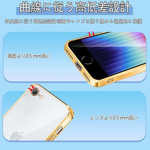 iPhone SE 第3世代 用/iPhone SE 第2世代/ iPhone 8/ iPhone 7 用 軽量 ケース ソフト クリア TPU スマホケース 耐衝撃 耐摩擦 メッキ加工 黄変防止 耐久性 人気 アイフォン SE3 SE2 8 7 用カバー 4.7 インチ(ゴールド) a