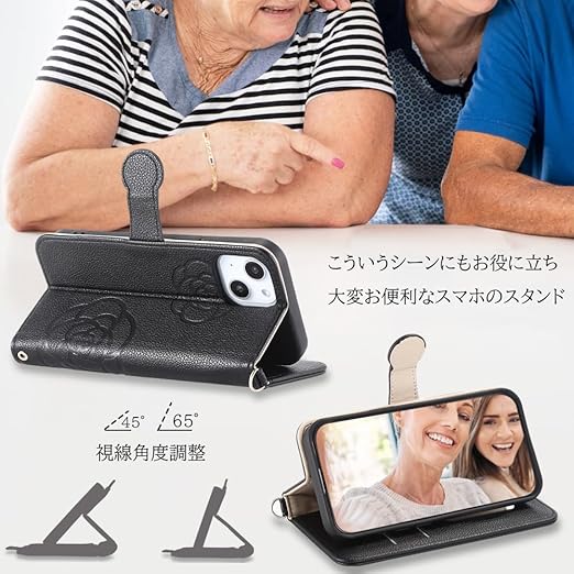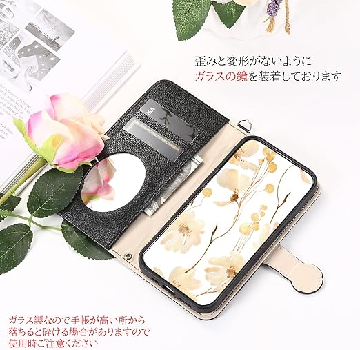 らくらくスマートフォン f-42a / F-01L スマホケース 手帳型 お花柄 無地 鏡付き タッセルセット 女性かわいい Befortwo ドコモ F-42a 携帯ケース ポケット付き ストラップホール付き キーホルダー付け らくらくホン F-42a スマホカバー 手帳型 マグネット式 使いやすい ソフトなTPU製カバー カード2枚入れ スタンド機能 ブラック a