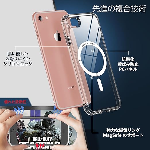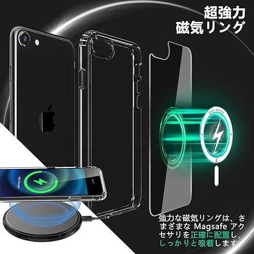 ONES HD超透明 iPhone Se3 Se2 Se 8 7 超強磁性MagSafe対応 ハードケース 米軍MIL規格 エアバッグ 超耐衝撃 レンズ保護 画面保護 「 高靭性強化PC保護板 ? 高弾性衝撃吸収・シリコンバンパー 」 Qiワイヤレス充電 傷防止 滑り止め 超軽量 持ちやすい 黄ばみ防止 クリスタル クリア マグネット カバー a