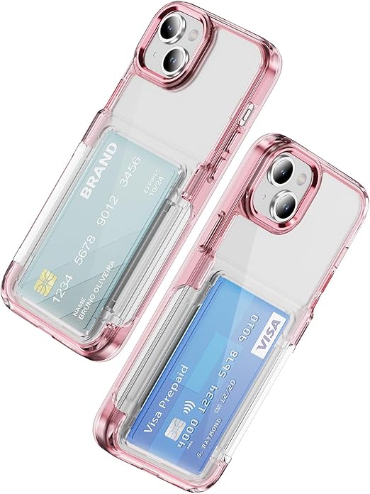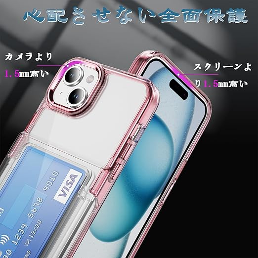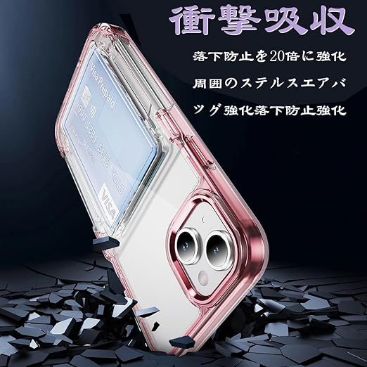 MuZiF iPhone 14 用 ケース カード収納 クリア 米軍MIL規格の保護 耐衝撃構造 黄変防止 擦り傷防止 透明 PC 背面クリア アイフォン14 用 カバー クリア ケース(iPhone 14,ピンク) a
