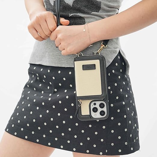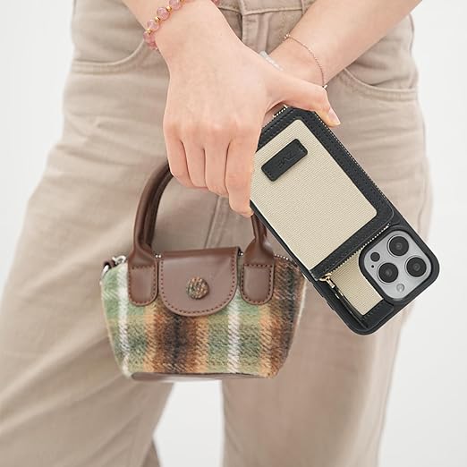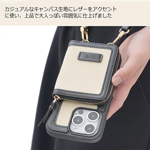 【オシャレで多機能性】①カードケース:財布の代わり、手軽なお出かけに ②カードポケットのチャックを開き立てかけて、横置きにしてスタンドになる、動画&自撮り&ビデオ会話など楽に
