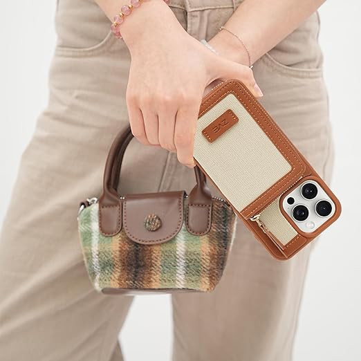 ZVE iphone 15pro max適応ケースカード入れ 【キャンバスレザーコンビ】アイフォン15promax 手帳型ショルダーストラップ付き iPhone15pro maxケースicカード入れ 2ways あいふぉん15プロマックス適応ケース財布型 6.7インチ(ブラウン) a