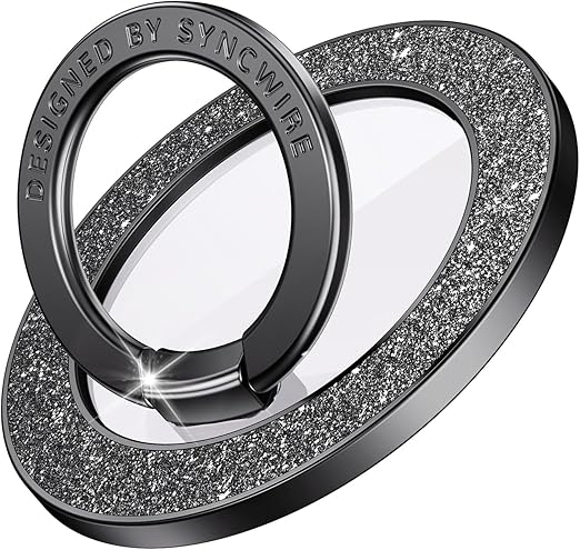 Syncwire MagSafe対応マグネット式スマートフォングリップ、マグネット式スマートフォンリングホルダー、回転式スタンド機能付き携帯電話スタンド 取り外し可能なMagSafeアクセサリー iPhone 15 Pro Max 14 13 12、Android用 -黒く輝くダイヤモンド a