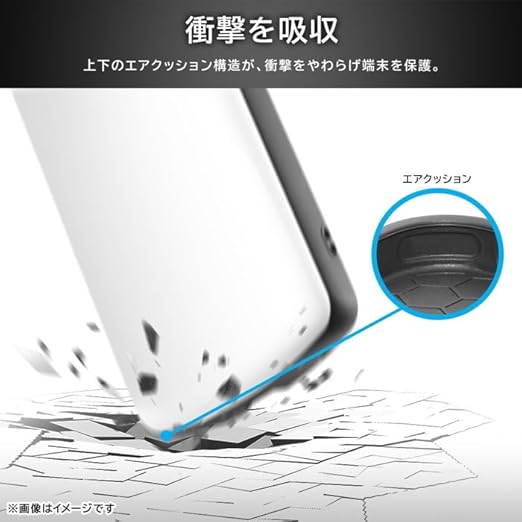 丸みを帯びた持ちやすい形状 / 手になじみ持ちやすい / 落下防止 / 落としにくい / 衝撃をやわらげる上下のエアクッション / 衝撃吸収 / 耐衝撃 耐衝撃ケース / エアクッション クッション性抜群