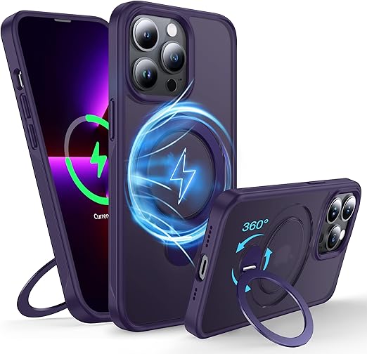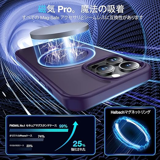 FNDMIL【米軍MIL規格・Magsafe対応】360°回転 iPhone 13 Pro 用 ケース [滑り止めテクスチャ] [目に見えないスタンド]シリコンフレーム 半透明マットハードケース アイフォーン13 Pro 用 ケース マグセーフ対応 ワイヤレス充電対応 薄型 (パープル) a